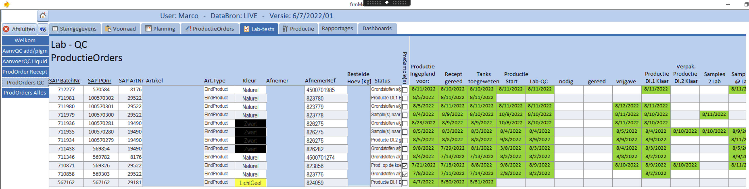 Het lab kan op zijn beurt ook de eigen kwaliteitscontrole-orders volgen via dit dashboard: