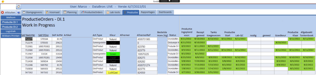 In het ERP-Basis programma kunnen naar wens diverse real-time dashboards worden ingebouwd. Bijvoorbeeld hoe ver de productielijnen zijn met hun voortgang.